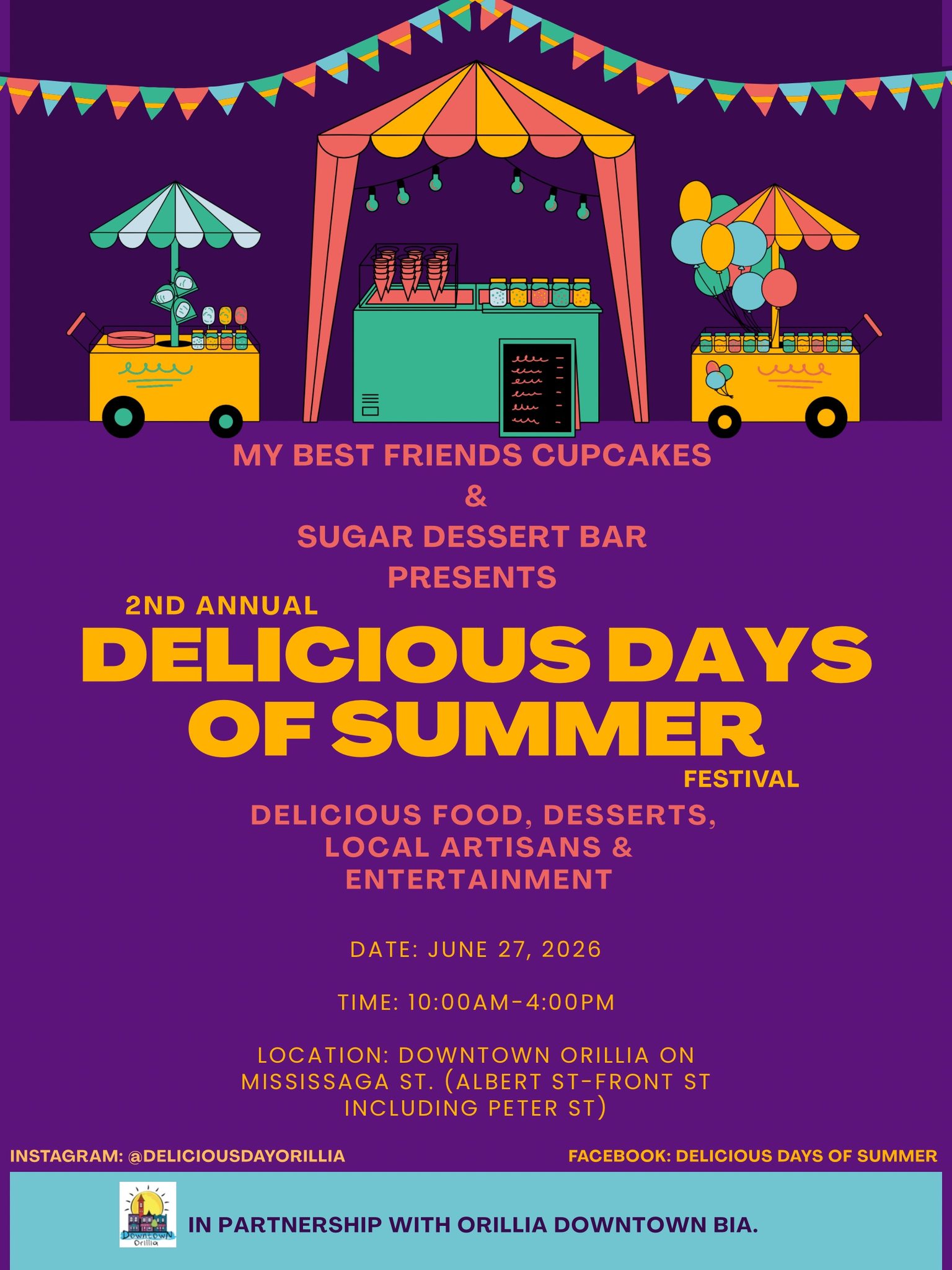 Get ready to savour summer in downtown Orillia at the Delicious Days of Summer Food Festival on June 27. From 10 a.m. to 4 p.m., the downtown core will come alive with more than 120 vendors offering mouthwatering food, decadent desserts, handcrafted goods, and unique artisan creations. With live energy, local flavour, and a full street closure transforming the heart of the city into a vibrant open-air market, it’s shaping up to be one of the season’s sweetest events.